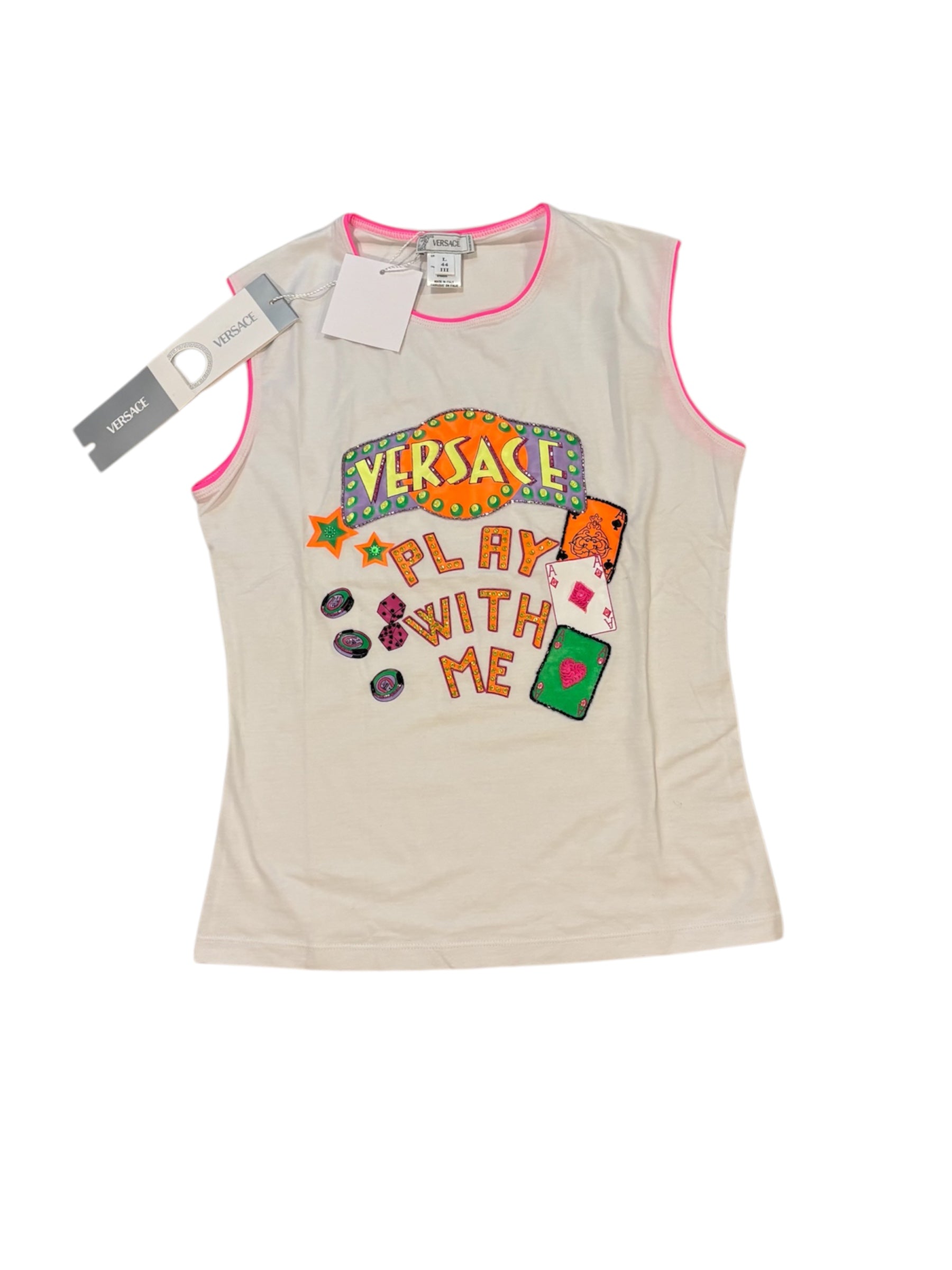 Versace graphic tee with the words “Versace Play With Me” in bold lettering. Perfect for summer. NWT.